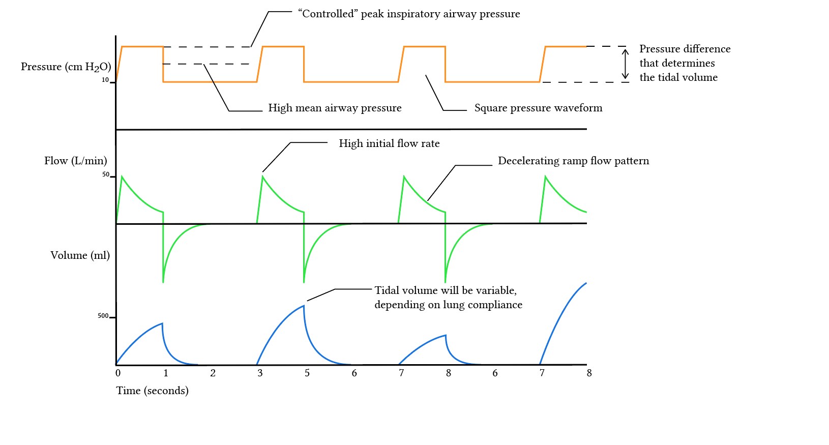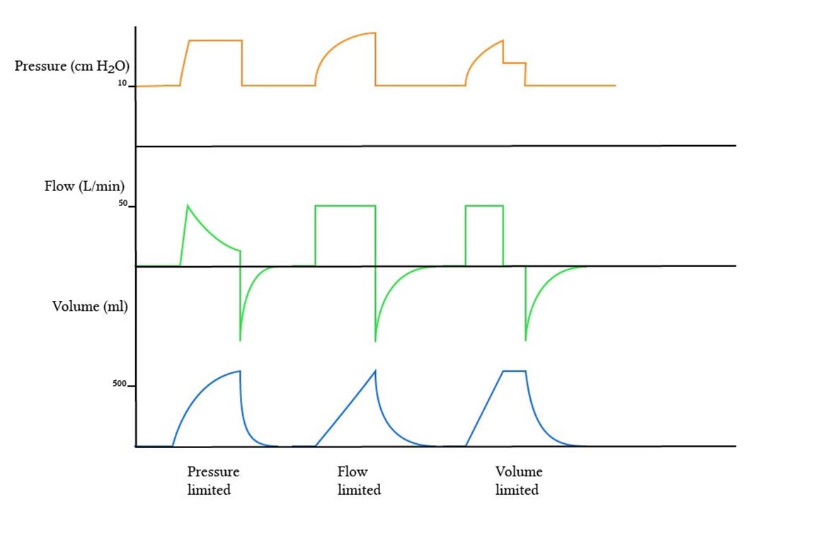 • For example a breath may start with a pressure control variable using a decelerating flow waveform, then reach the pressure limit mid breath and change to volume control until the target volume is reached