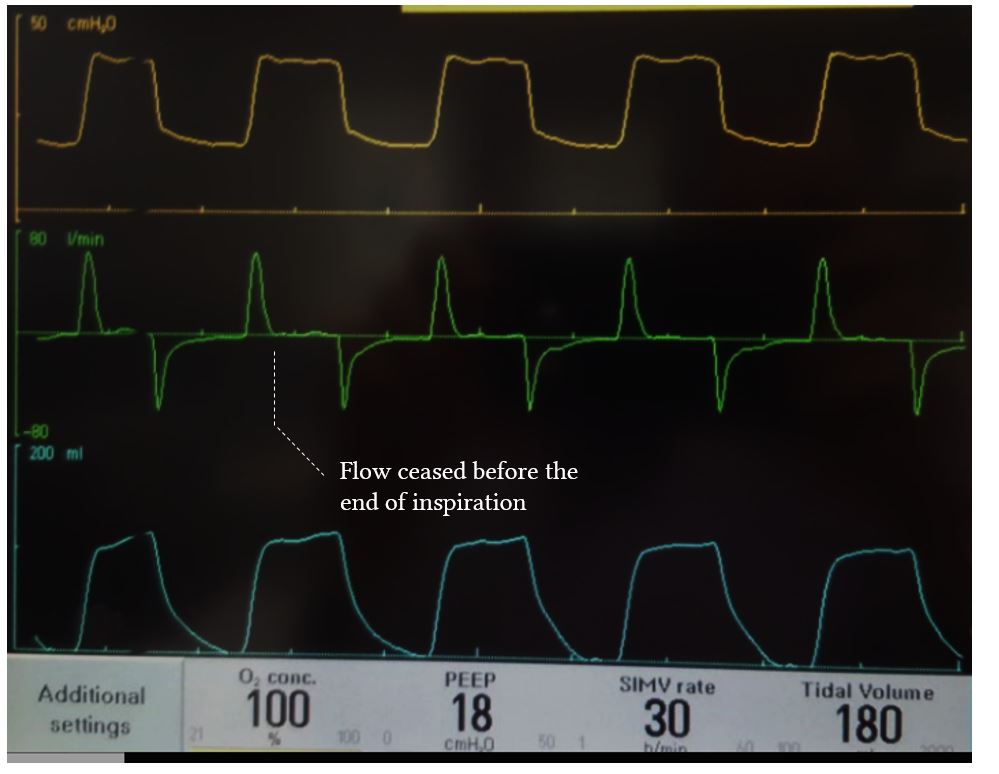 • Insufficient flow may give rise to patient-ventilator dyssynchrony