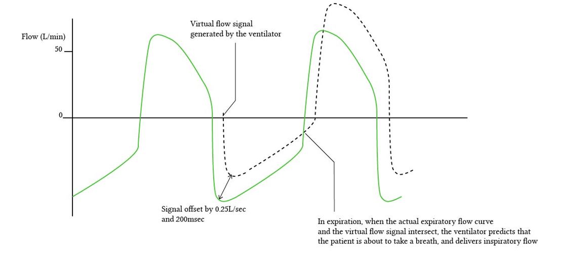 • Ventilation is triggered when flow is diverted to the patient when the patient begins inspiration