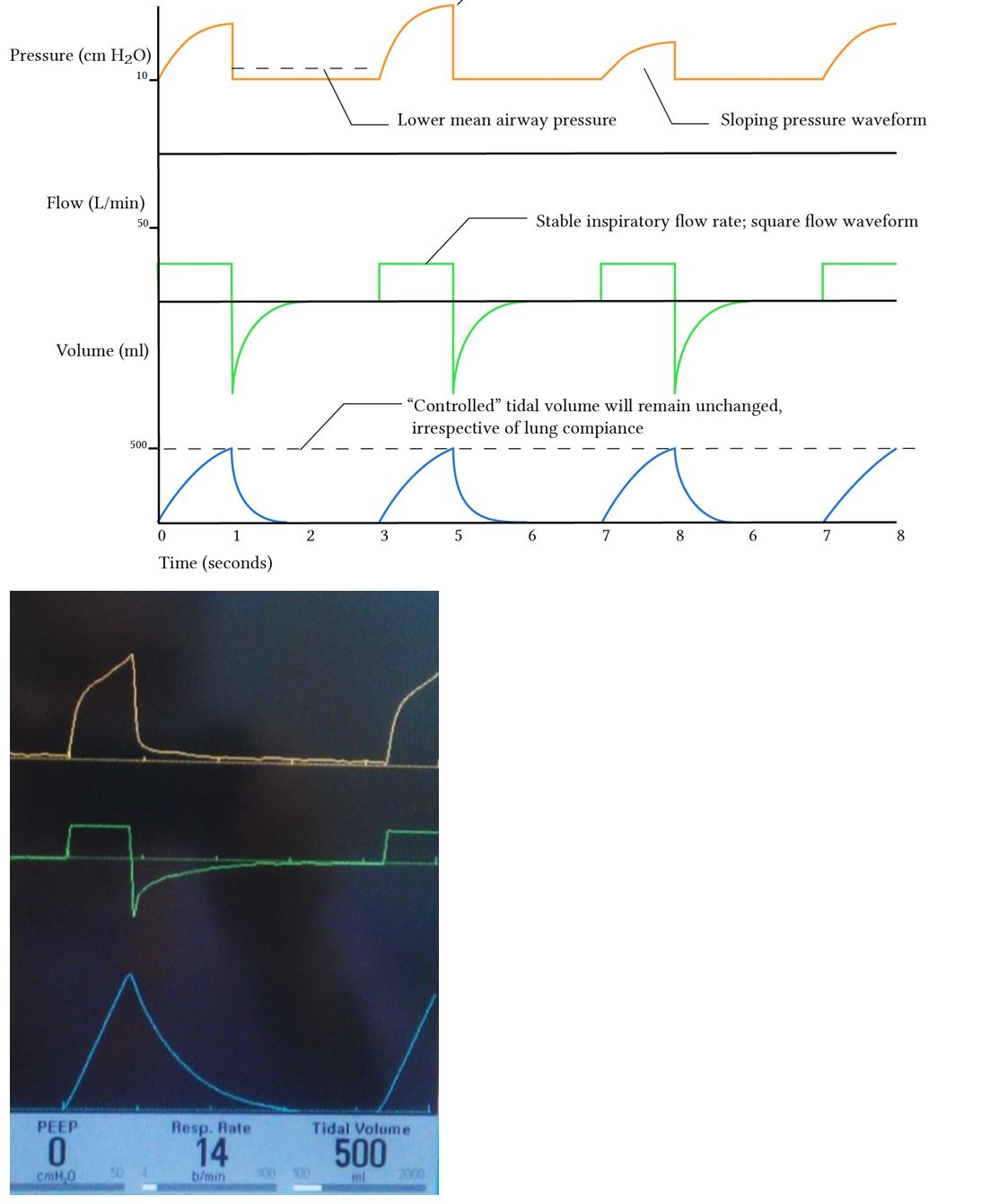 • The mean airway pressure is lower with volume control ventilation
