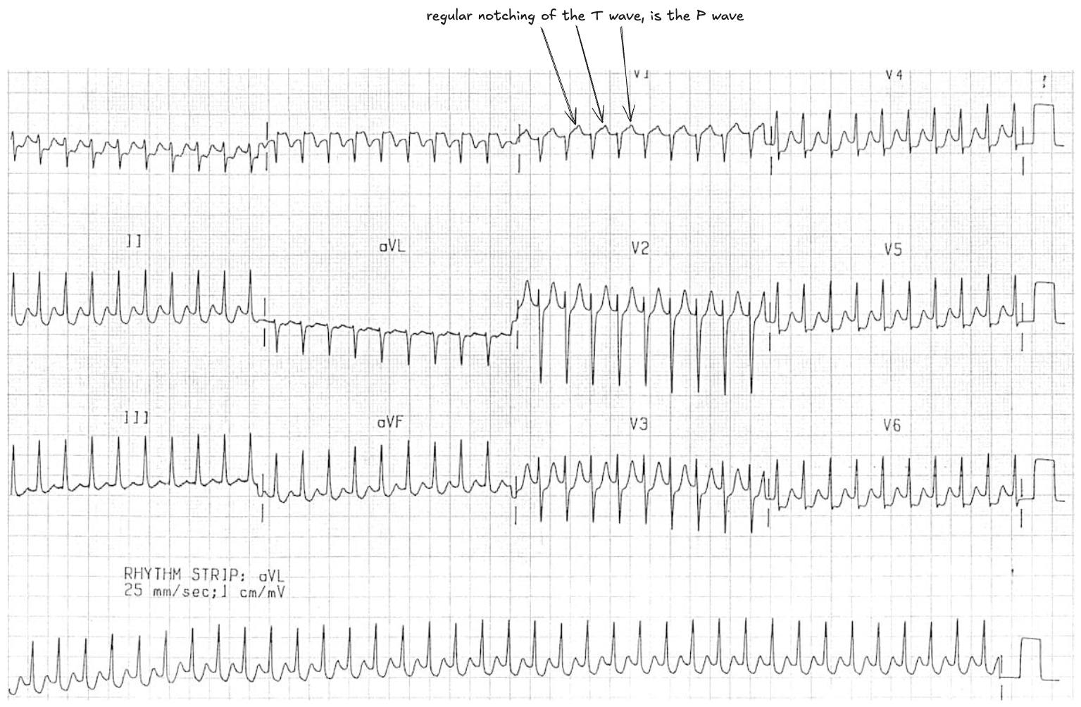 - Rhythm resolved with vagal manoeuvres (despite it probably not being safe to do this)