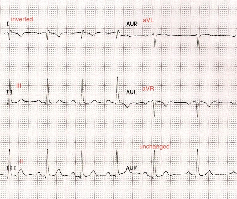 • Lead I becomes inverted
